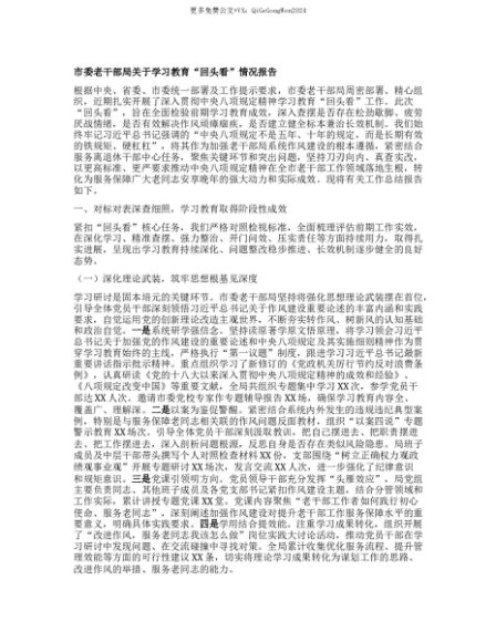 【七哥公文】2025年:【七哥公文】市委老干部局关于学习教育“回头看”情况报告+更多免费公文+VX:QiGeGongWen2024+更多免费公文+VX:QiGeGongWen2024