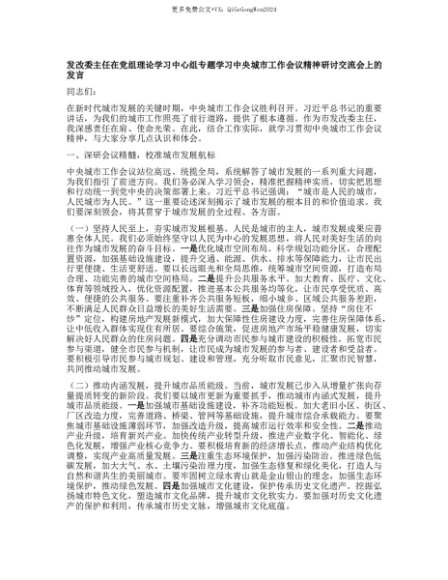 【七哥公文】2025年:【七哥公文】发改委主任在X组理论学习中心组专题学习中央城市工作会议精神研讨交流会上的发言+更多免费公文+VX:QiGeGongWen2024+更多免费公文+VX:QiGeGongWen2024