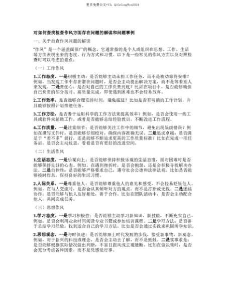 【七哥公文】2025年:【七哥公文】对如何查找检查作风方面存在问题的解读和问题事例+更多免费公文+VX:QiGeGongWen2024+更多免费公文+VX:QiGeGongWen2024