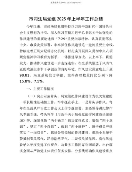 【七哥公文】2025年:【七哥公文】市司法局X组2025年上半年工作总结+更多免费公文+VX:QiGeGongWen2024+更多免费公文+VX:QiGeGongWen2024