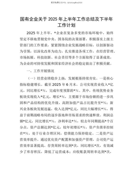 【七哥公文】2025年:【七哥公文】国有企业关于2025年上半年工作总结及下半年工作计划+更多免费公文+VX:QiGeGongWen2024+更多免费公文+VX:QiGeGongWen2024