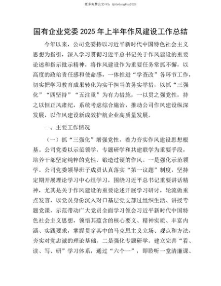 【七哥公文】2025年:【七哥公文】国有企业X委2025年上半年作风建设工作总结+更多免费公文+VX:QiGeGongWen2024+更多免费公文+VX:QiGeGongWen2024