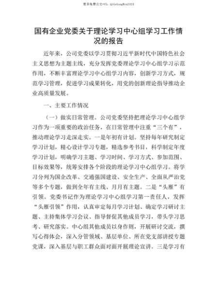 【七哥公文】2025年:【七哥公文】国有企业X委关于理论学习中心组学习工作情况的报告+更多免费公文+VX:QiGeGongWen2024+更多免费公文+VX:QiGeGongWen2024