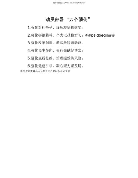 【七哥公文】2025年:【七哥公文】动员部署“六个强化”+更多免费公文+VX:QiGeGongWen2024+更多免费公文+VX:QiGeGongWen2024