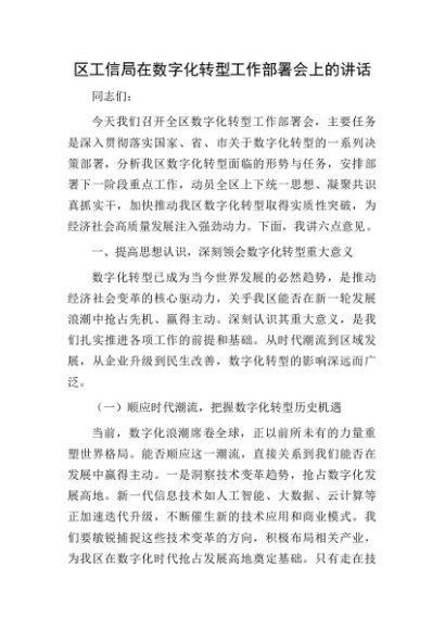 【七哥公文】2025年:【七哥公文】区工信局在数字化转型工作部署会上的讲话+更多免费公文+VX:QiGeGongWen2024+更多免费公文+VX:QiGeGongWen2024