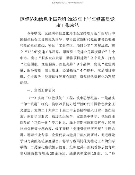 【七哥公文】2025年:【七哥公文】区经济和信息化局X组2025年上半年抓基层X建工作总结+更多免费公文+VX:QiGeGongWen2024+更多免费公文+VX:QiGeGongWen2024
