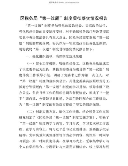 【七哥公文】2025年:【七哥公文】区税务局“第一议题”制度贯彻落实情况报告+更多免费公文+VX:QiGeGongWen2024+更多免费公文+VX:QiGeGongWen2024