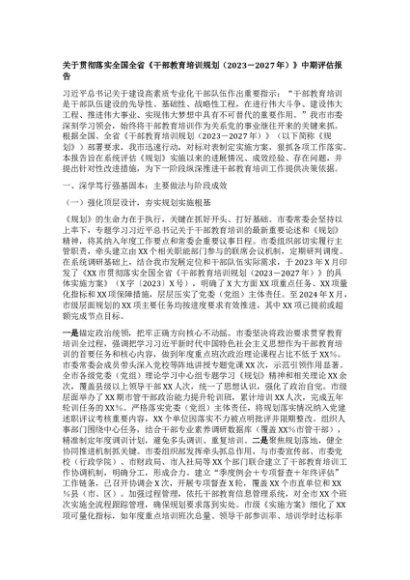 【七哥公文】2025年:【七哥公文】关于贯彻落实全国全省《干部教育培训规划(2023-2027年)》中期评估报告+更多免费公文+VX:QiGeGongWen2024+更多免费公文+VX:QiGeGongWen2024