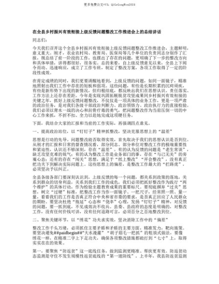 【七哥公文】2025年:【七哥公文】【团队精品】在全县乡村振兴有效衔接上级反馈问题整改工作推进会上的总结讲话+更多免费公文+VX:QiGeGongWen2024+更多免费公文+VX:QiGeGongWen2024