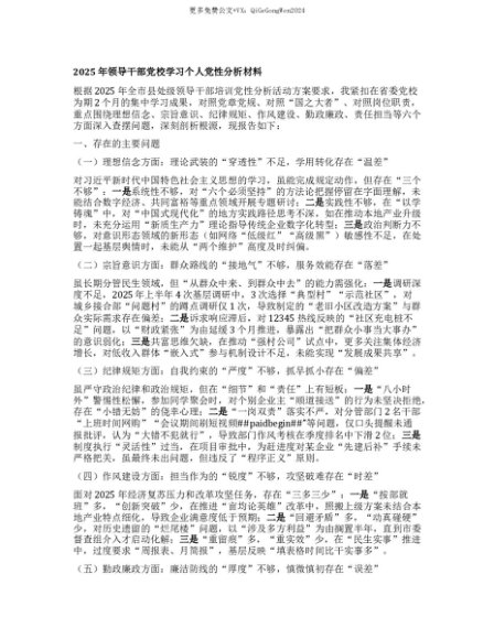 【七哥公文】2025年:【七哥公文】2025年领导干部X校学习个人X性分析材料+更多免费公文+VX:QiGeGongWen2024+更多免费公文+VX:QiGeGongWen2024