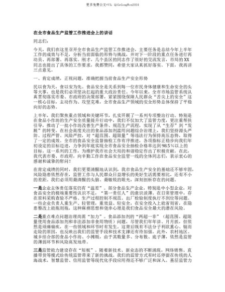 【七哥公文】2025年:【七哥公文】【团队精品】在全市食品生产监管工作推进会上的讲话+更多免费公文+VX:QiGeGongWen2024+更多免费公文+VX:QiGeGongWen2024