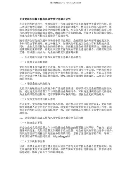 【七哥公文】2025年:【七哥公文】企业X组织监督工作与风险管控业务融合研究+更多免费公文+VX:QiGeGongWen2024+更多免费公文+VX:QiGeGongWen2024