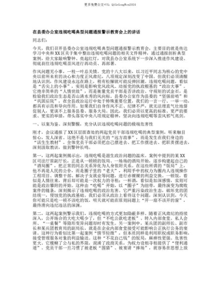 【七哥公文】2025年:【七哥公文】【团队精品】在县委办公室违规吃喝典型问题通报警示教育会上的讲话+更多免费公文+VX:QiGeGongWen2024+更多免费公文+VX:QiGeGongWen2024