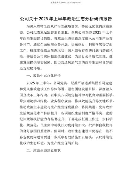 【七哥公文】2025年:【七哥公文】公司关于2025年上半年ZZ生态分析研判报告+更多免费公文+VX:QiGeGongWen2024+更多免费公文+VX:QiGeGongWen2024
