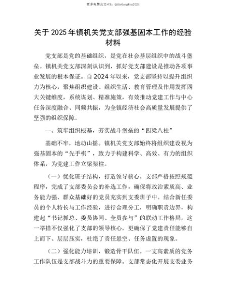 【七哥公文】2025年:【七哥公文】关于2025年镇机关X支部强基固本工作的经验材料+更多免费公文+VX:QiGeGongWen2024+更多免费公文+VX:QiGeGongWen2024