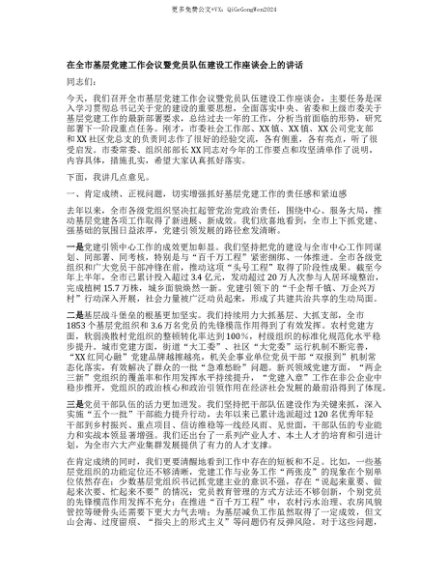 【七哥公文】2025年:【七哥公文】【团队精品】在全市基层X建工作会议暨X员队伍建设工作座谈会上的讲话+更多免费公文+VX:QiGeGongWen2024+更多免费公文+VX:QiGeGongWen2024