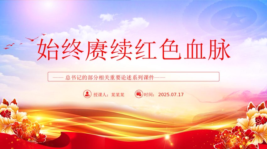 【七哥公文】2025年:【七哥公文】2025始终赓续红色血脉PPT总书记的部分相关重要论述党课+更多免费公文+VX:QiGeGongWen2024+更多免费公文+VX:QiGeGongWen2024