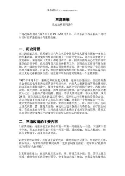 【七哥公文】2025年:【七哥公文】1927年三湾改编PPT党史红色故事系列课件(讲稿)+更多免费公文+VX:QiGeGongWen2024+更多免费公文+VX:QiGeGongWen2024
