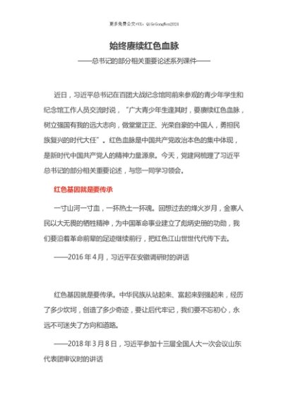【七哥公文】2025年:【七哥公文】2025始终赓续红色血脉PPT总书记的部分相关重要论述党课(讲稿)+更多免费公文+VX:QiGeGongWen2024+更多免费公文+VX:QiGeGongWen2024
