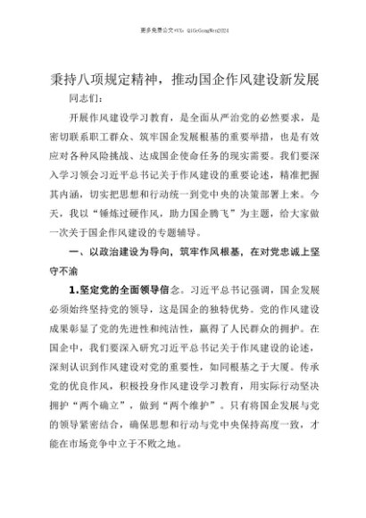 【七哥公文】2025年:【七哥公文】研讨发言:秉持八项规定精神,推动国企作风建设新发展+更多免费公文+VX:QiGeGongWen2024+更多免费公文+VX:QiGeGongWen2024