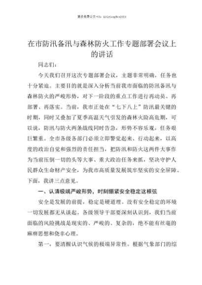 【七哥公文】2025年:【七哥公文】在市防汛备汛与森林防火工作专题部署会议上的讲话+更多免费公文+VX:QiGeGongWen2024+更多免费公文+VX:QiGeGongWen2024