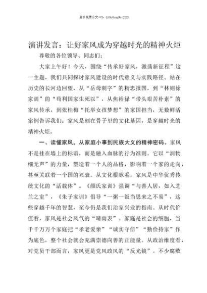 【七哥公文】2025年:【七哥公文】演讲发言:让好家风成为穿越时光的精神火炬+更多免费公文+VX:QiGeGongWen2024+更多免费公文+VX:QiGeGongWen2024