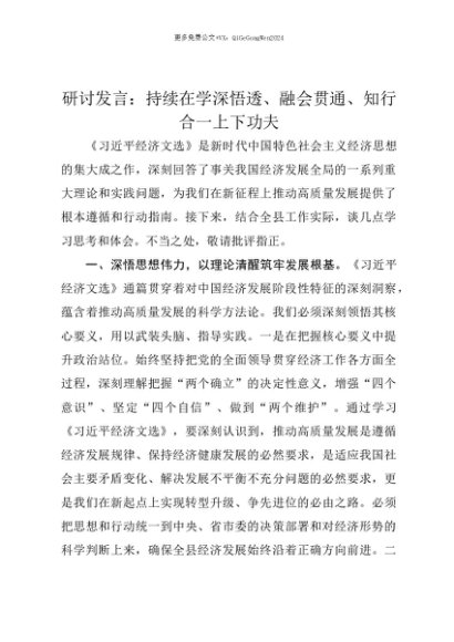 【七哥公文】2025年:【七哥公文】研讨发言:持续在学深悟透、融会贯通、知行合一上下功夫+更多免费公文+VX:QiGeGongWen2024+更多免费公文+VX:QiGeGongWen2024