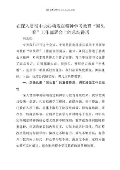 【七哥公文】2025年:【七哥公文】在深入贯彻中央八项规定精神学习教育“回头看”工作部署会上的总结讲话+更多免费公文+VX:QiGeGongWen2024+更多免费公文+VX:QiGeGongWen2024