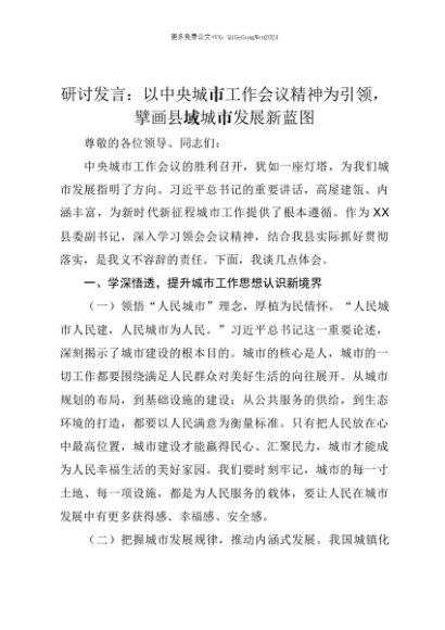 【七哥公文】2025年:【七哥公文】研讨发言:以中央城市工作会议精神为引领,擘画县域城市发展新蓝图+更多免费公文+VX:QiGeGongWen2024+更多免费公文+VX:QiGeGongWen2024