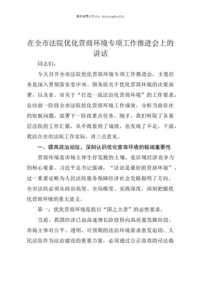 【七哥公文】2025年:【七哥公文】在全市法院优化营商环境专项工作推进会上的讲话+更多免费公文+VX:QiGeGongWen2024+更多免费公文+VX:QiGeGongWen2024