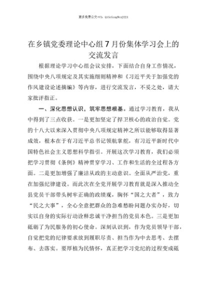 【七哥公文】2025年:【七哥公文】在乡镇党委理论中心组7月份集体学习会上的交流发言+更多免费公文+VX:QiGeGongWen2024+更多免费公文+VX:QiGeGongWen2024