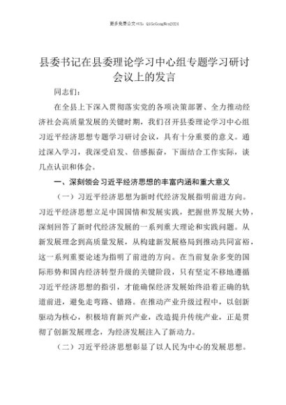 【七哥公文】2025年:【七哥公文】县委书记在县委理论学习中心组专题学习研讨会议上的发言+更多免费公文+VX:QiGeGongWen2024+更多免费公文+VX:QiGeGongWen2024