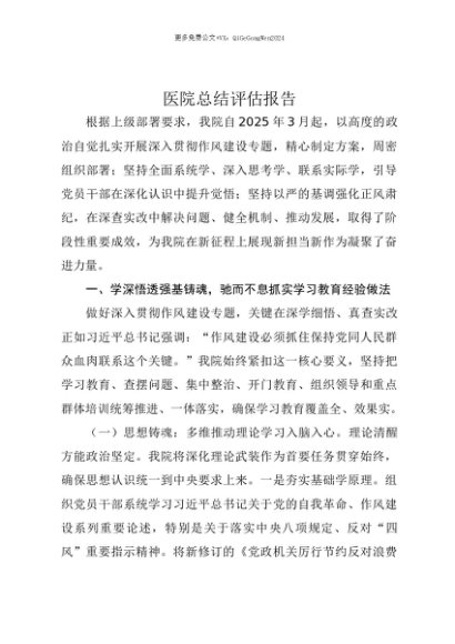 【七哥公文】2025年:【七哥公文】医院贯彻中央八项规定精神学习教育总结评估报告+更多免费公文+VX:QiGeGongWen2024+更多免费公文+VX:QiGeGongWen2024