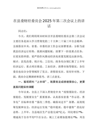 【七哥公文】2025年:【七哥公文】在县委财经委员会2025年第二次会议上的讲话+更多免费公文+VX:QiGeGongWen2024+更多免费公文+VX:QiGeGongWen2024