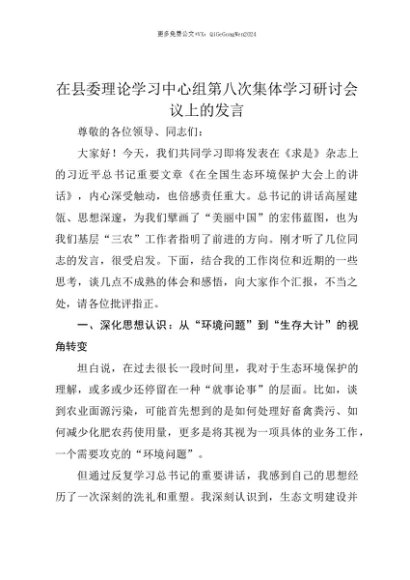 【七哥公文】2025年:【七哥公文】在县委理论学习中心组第八次集体学习研讨会议上的发言+更多免费公文+VX:QiGeGongWen2024+更多免费公文+VX:QiGeGongWen2024
