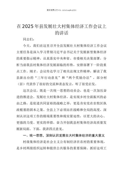 【七哥公文】2025年:【七哥公文】在2025年县发展壮大村集体经济工作会议上的讲话+更多免费公文+VX:QiGeGongWen2024+更多免费公文+VX:QiGeGongWen2024