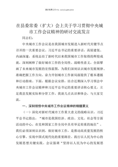 【七哥公文】2025年:【七哥公文】在县委常委(扩大)会上关于学习贯彻中央城市工作会议精神的研讨交流发言+更多免费公文+VX:QiGeGongWen2024+更多免费公文+VX:QiGeGongWen2024