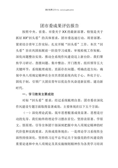 【七哥公文】2025年:【七哥公文】团市委贯彻中央八项规定精神学习教育成果评估报告+更多免费公文+VX:QiGeGongWen2024+更多免费公文+VX:QiGeGongWen2024