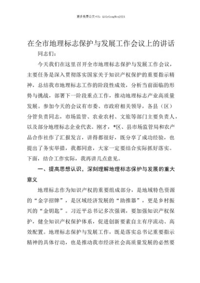 【七哥公文】2025年:【七哥公文】在全市地理标志保护与发展工作会议上的讲话+更多免费公文+VX:QiGeGongWen2024+更多免费公文+VX:QiGeGongWen2024