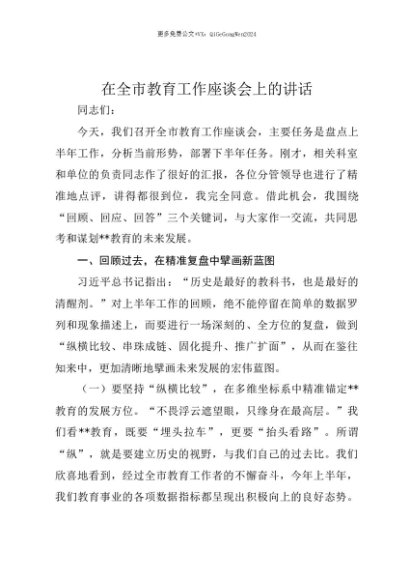 【七哥公文】2025年:【七哥公文】在全市教育工作座谈会上的讲话+更多免费公文+VX:QiGeGongWen2024+更多免费公文+VX:QiGeGongWen2024