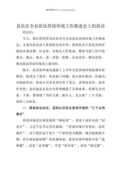 【七哥公文】2025年:【七哥公文】县长在全县优化营商环境工作推进会上的讲话+更多免费公文+VX:QiGeGongWen2024+更多免费公文+VX:QiGeGongWen2024