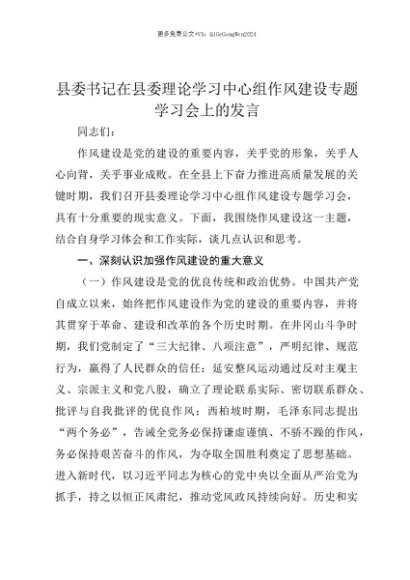 【七哥公文】2025年:【七哥公文】县委书记在县委理论学习中心组作风建设专题学习会上的发言+更多免费公文+VX:QiGeGongWen2024+更多免费公文+VX:QiGeGongWen2024