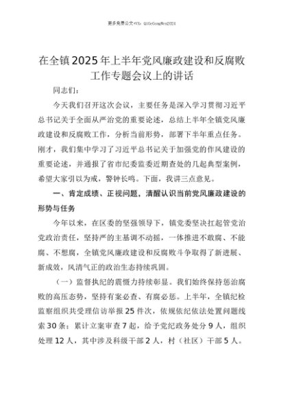 【七哥公文】2025年:【七哥公文】在全镇2025年上半年党风廉政建设和反腐败工作专题会议上的讲话+更多免费公文+VX:QiGeGongWen2024+更多免费公文+VX:QiGeGongWen2024
