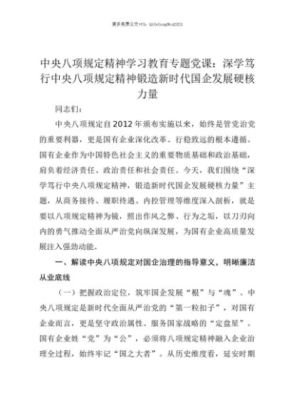 【七哥公文】2025年:【七哥公文】中央八项规定精神学习教育专题党课:深学笃行中央八项规定精神锻造新时代国企发展硬核力量+更多免费公文+VX:QiGeGongWen2024+更多免费公文+VX:QiGeGongWen2024