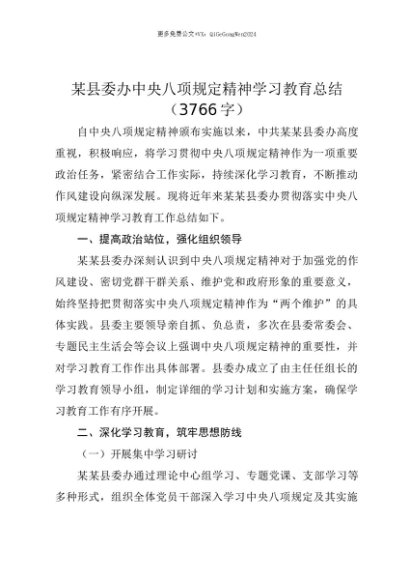 【七哥公文】2025年:【七哥公文】某县委办中央八项规定精神学习教育总结(3766字)+更多免费公文+VX:QiGeGongWen2024+更多免费公文+VX:QiGeGongWen2024