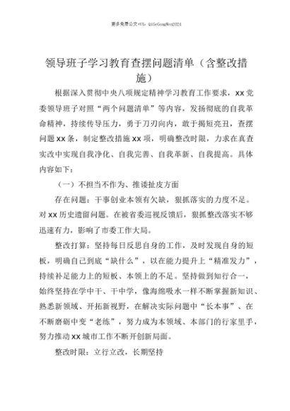 【七哥公文】2025年:【七哥公文】领导班子贯彻中央八项规定精神学习教育查摆问题清单(含整改措施)+更多免费公文+VX:QiGeGongWen2024+更多免费公文+VX:QiGeGongWen2024