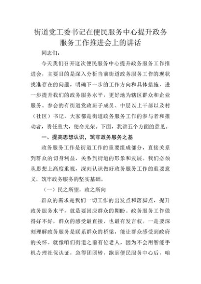 【七哥公文】2025年:【七哥公文】街道党工委书记在便民服务中心提升政务服务工作推进会上的讲话+更多免费公文+VX:QiGeGongWen2024+更多免费公文+VX:QiGeGongWen2024
