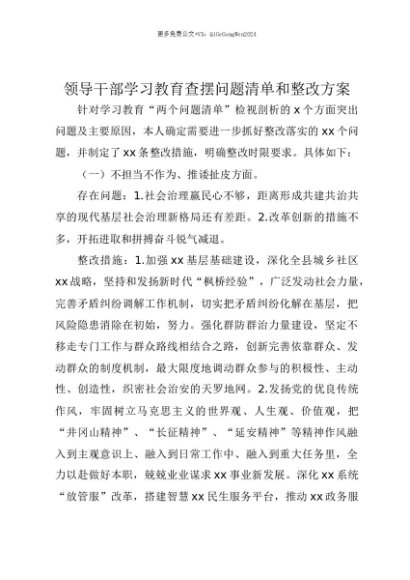 【七哥公文】2025年:【七哥公文】领导干部贯彻中央八项规定精神学习教育查摆问题清单和整改方案+更多免费公文+VX:QiGeGongWen2024+更多免费公文+VX:QiGeGongWen2024