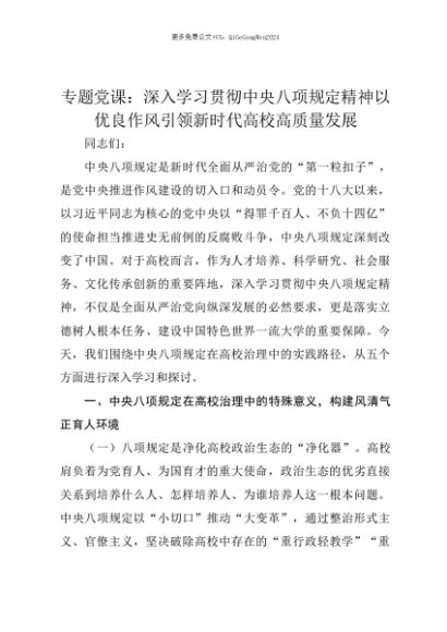 【七哥公文】2025年:【七哥公文】专题党课:深入学习贯彻中央八项规定精神以优良作风引领新时代高校高质量发展+更多免费公文+VX:QiGeGongWen2024+更多免费公文+VX:QiGeGongWen2024
