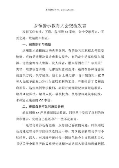 【七哥公文】2025年:【七哥公文】乡镇警示教育大会交流发言+更多免费公文+VX:QiGeGongWen2024+更多免费公文+VX:QiGeGongWen2024